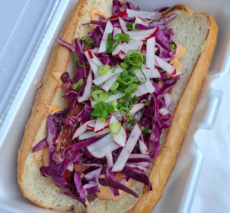 - Served on a long hoagie roll